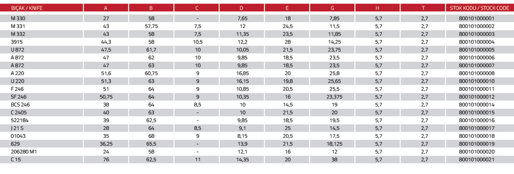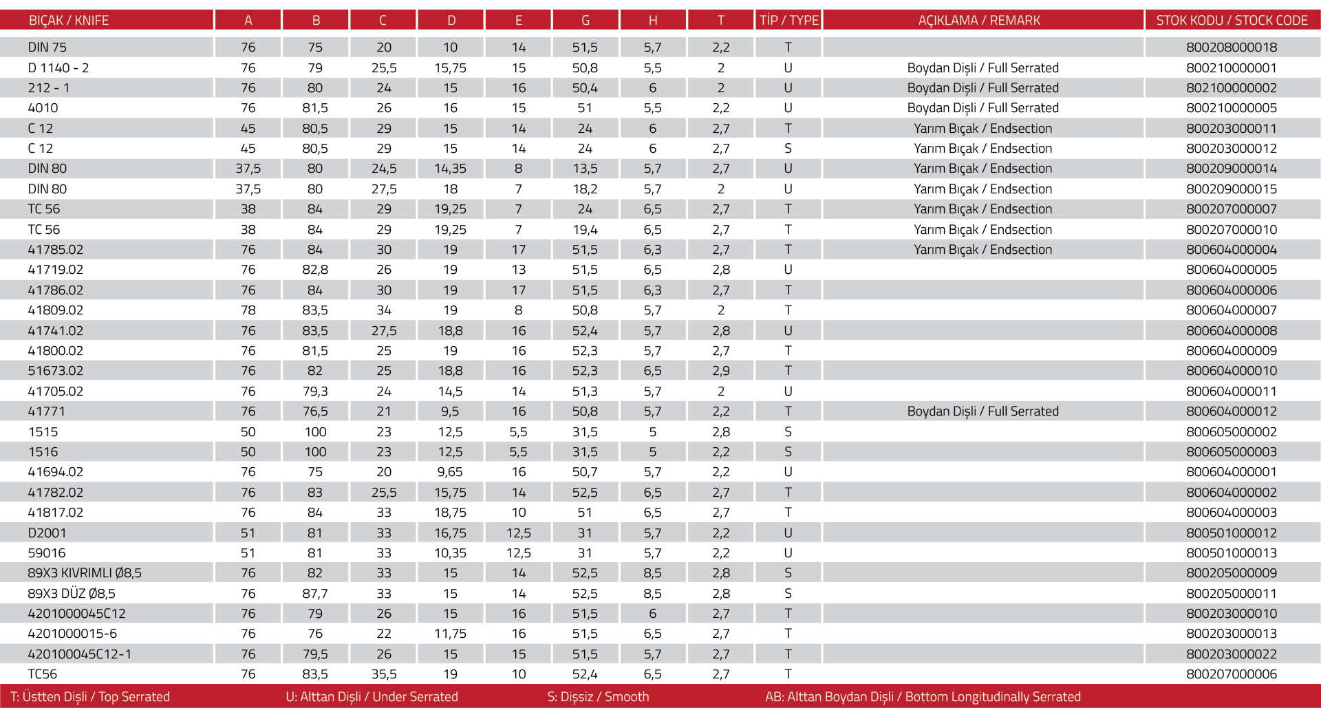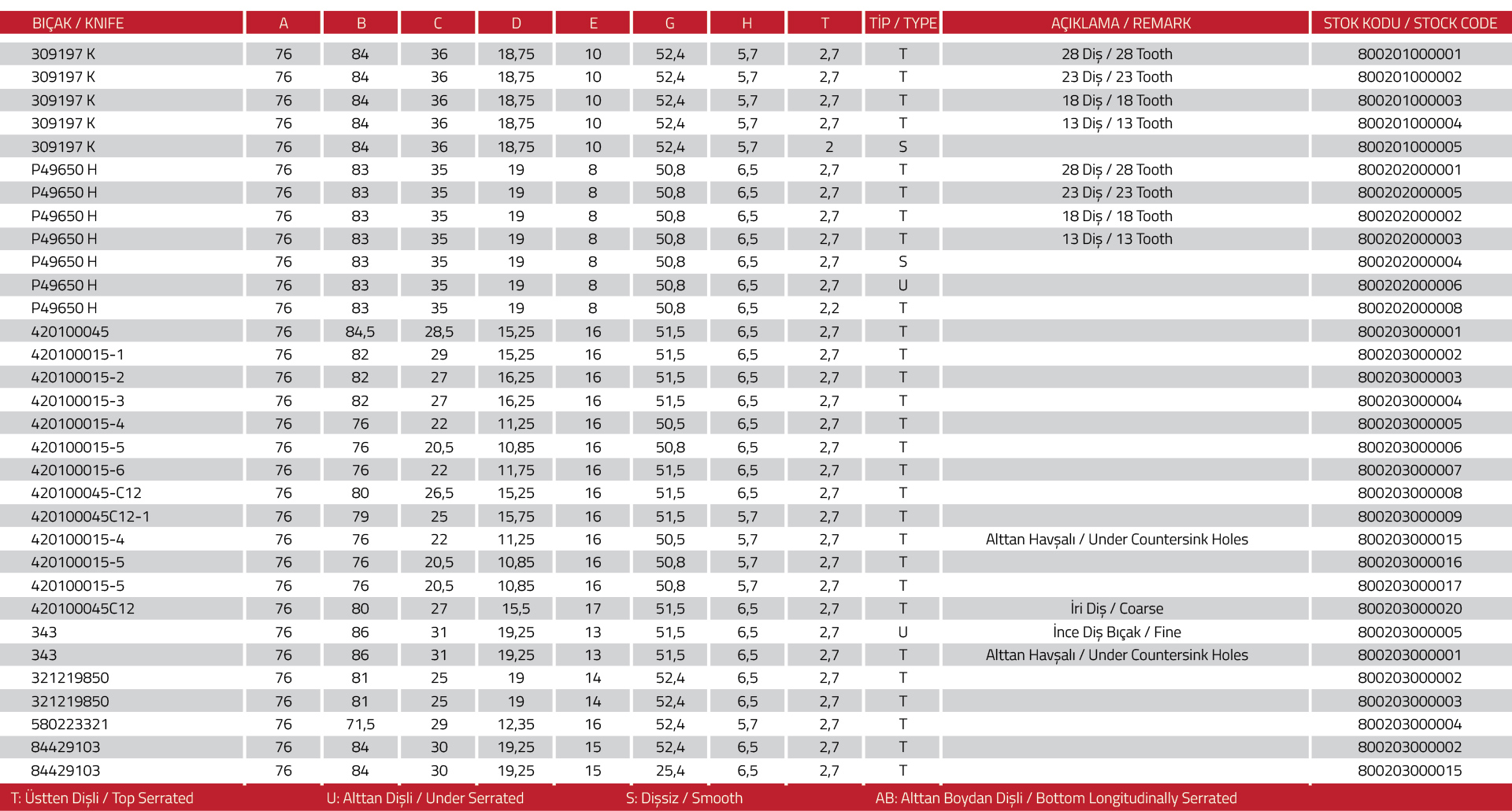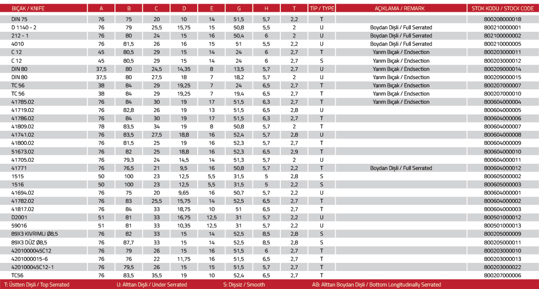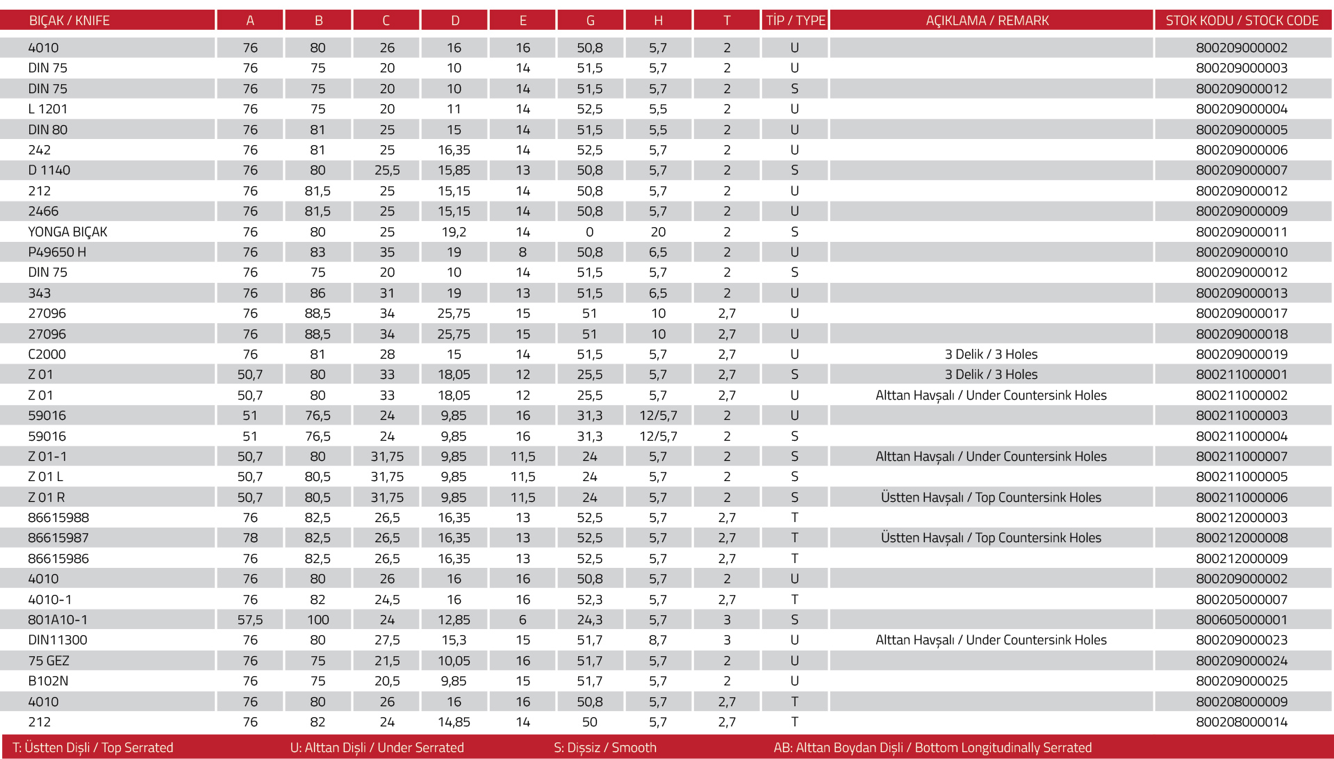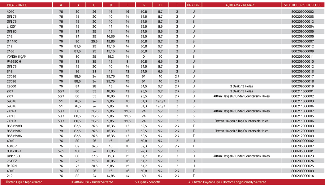 Kayhan Ertuğrul Makina bıçaklarının özellikleri;