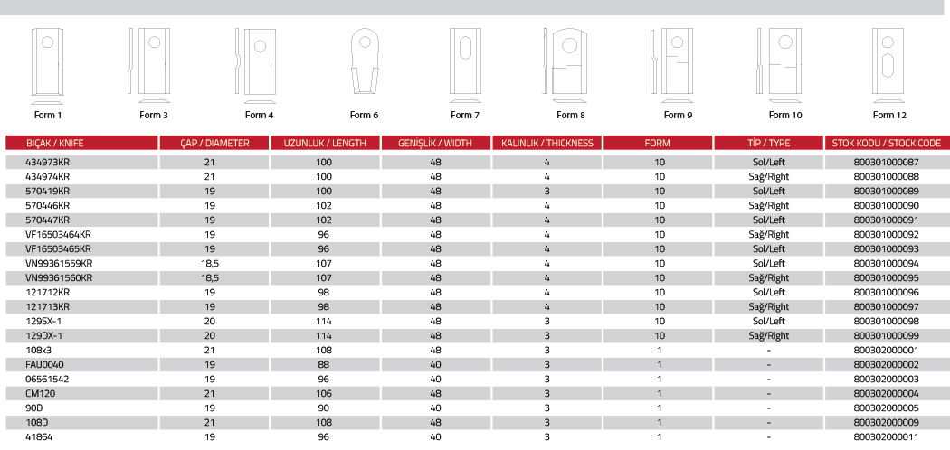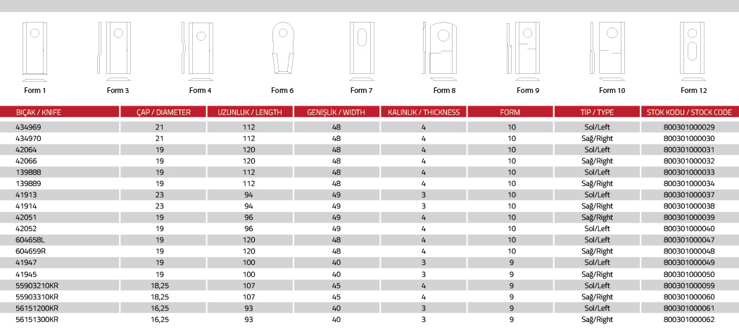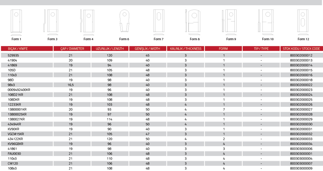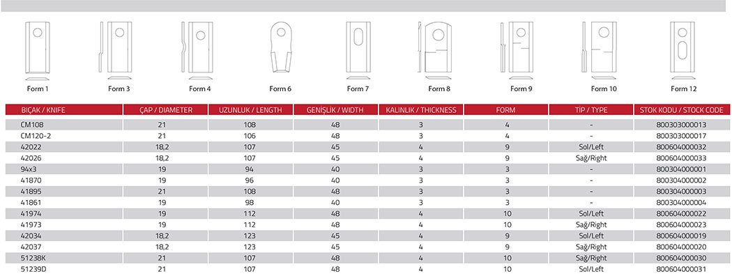 Kayhan Ertuğrul Makina bıçaklarının özellikleri;